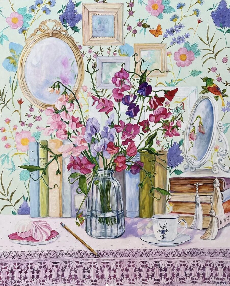 Ar mākslinieces Janas Nesterovičas gleznu reprodukcijām.