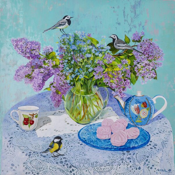 Maija sajūta, kad dienas kļūst garākas, un ceriņu vilinošā smarža aicina uz garām pastaigām. Tēja, saldumi un ziedu maigums - mirklis, ko gribas saglabāt.